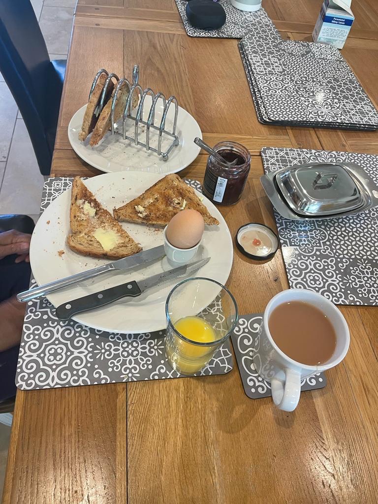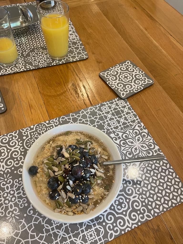 Both breakfasts were prepared by sous chef Nisha, and I have to give the porridge a rating of 8/10, nice and creamy!!! Nisha gave her breakfast a rating of 8/10, her 8 minute egg was perfection but tea could have been better!!! 😜