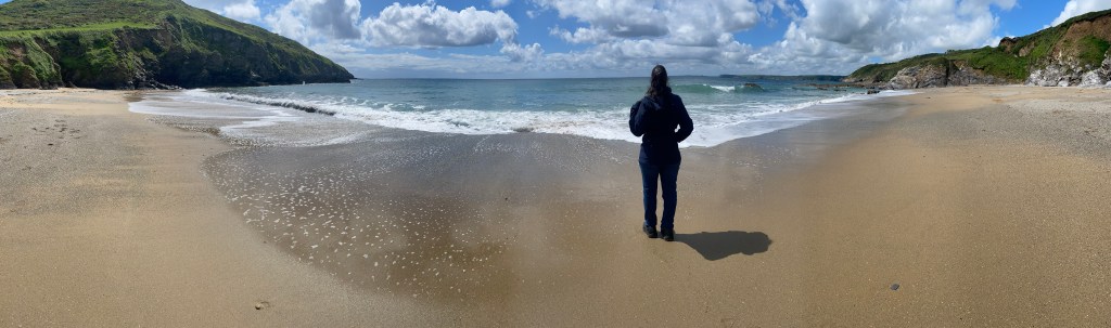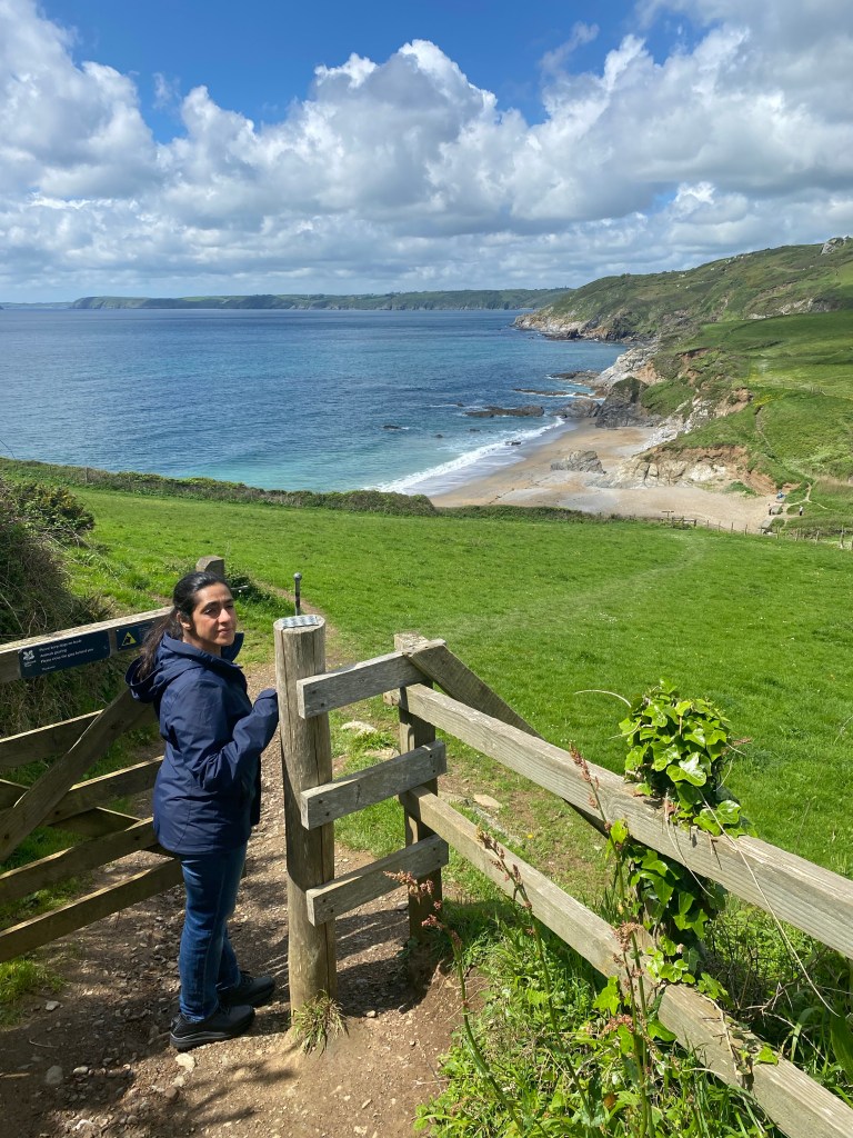 Soon enough, as the trek started getting treacherous, we turned back and opted for a path to Hemmick beach. This path wasn’t too bad, less muddy but we had to take it slowly as we were on a decline. Before long, we went through another gate and this was our view…