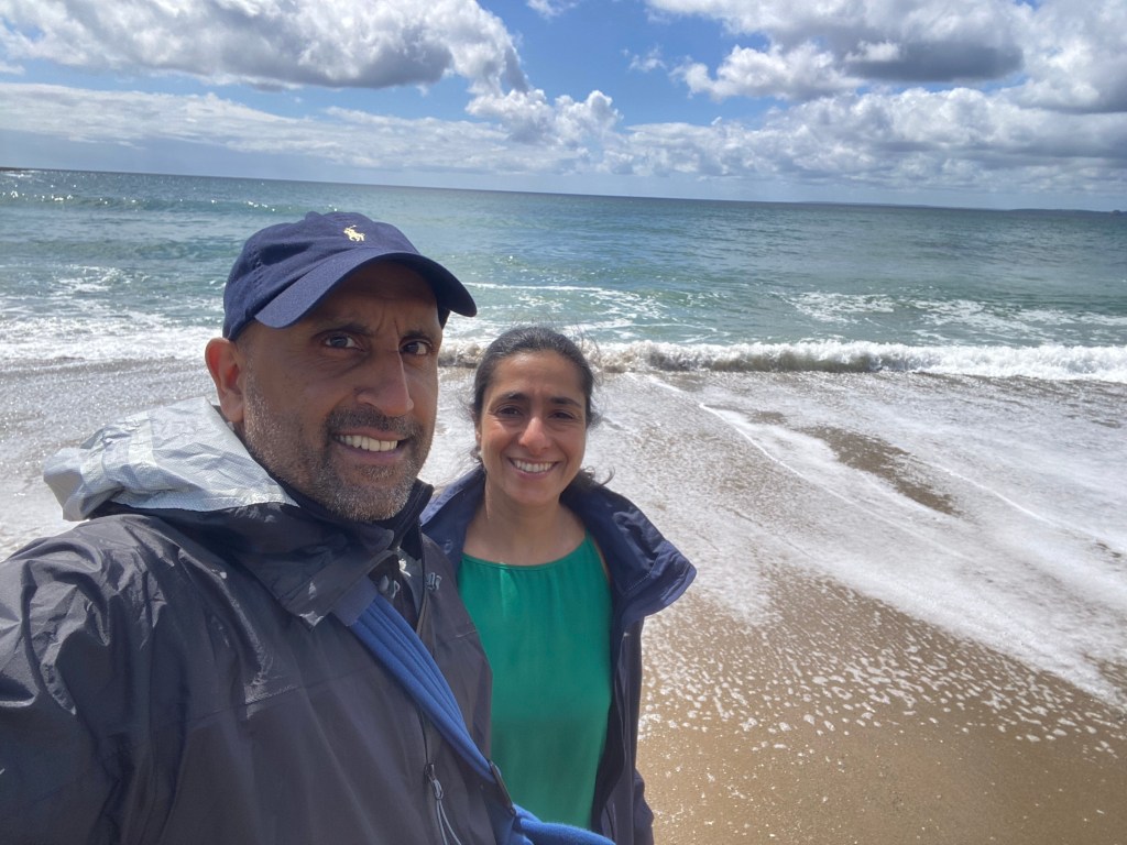 Now I was worried because we now had to walk down a wet field with no path…I gingerly walked down with Nisha just eager to get to the beach…