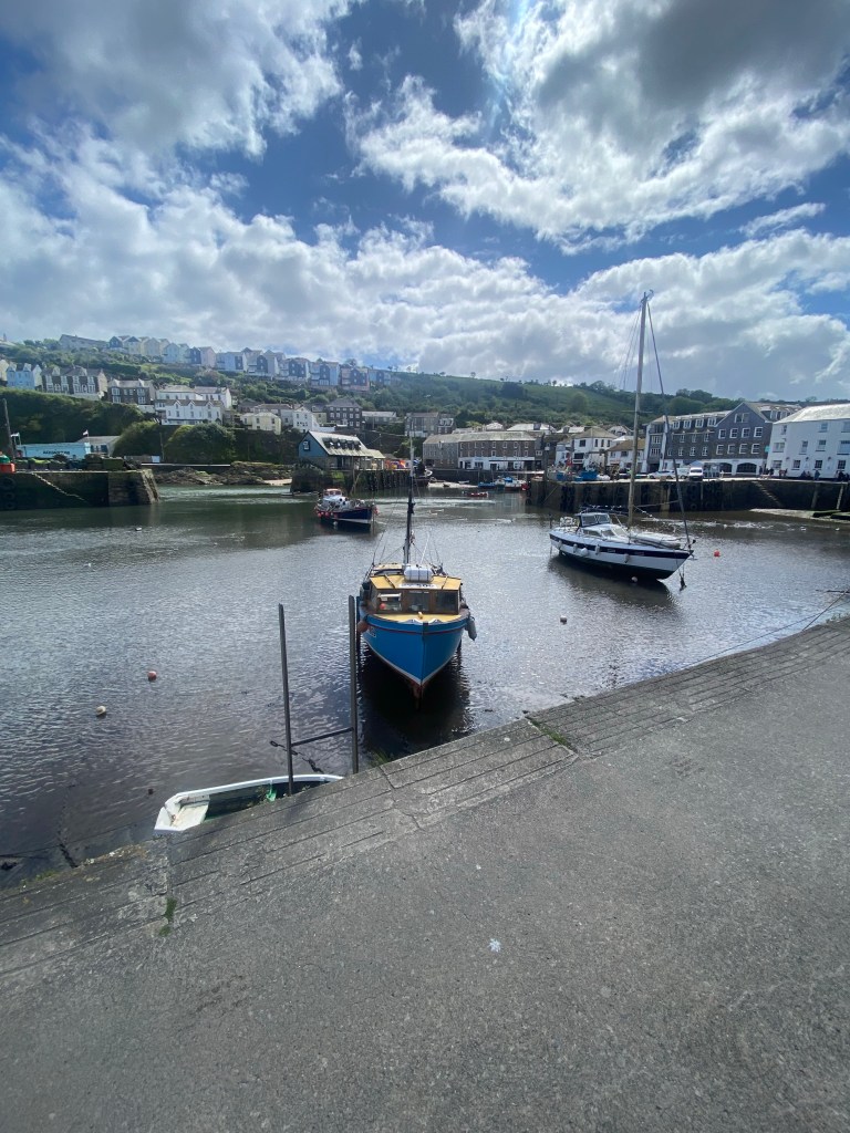 Now the trek up to the car park…all up hill, god we were knackered!!! And in need for food…google wasn’t helpful because it only recommended burger bars…off to Mevagissey we went, there was another restaurant there which had a nice menu. More windy narrow roads but this time there were cars coming in the opposite direction so the van in front of us needed to reverse so we had to reverse, just like the car behind us, we all managed to find a bit of space to allow 4 cars pass us. We arrived but this time we entered Mevagissey from the other end, manoeuvred their one way ish system and parked in a different car park. Now the restaurant we wanted to try is called Shark Fin but after looking at the menu, we decided to go back to The Wheel House. Today we ordered fresh battered cod, whitebait, plain and cheesy fries, green beans with asparagus in a butter sauce and a Greek salad, all washed down with 0% Guinness…the harbour is alcohol free…who knew!!! Yet again, the food didn’t disappoint!!! (No photos because we forgot!!!, we’ll, maybe one photo 😜)