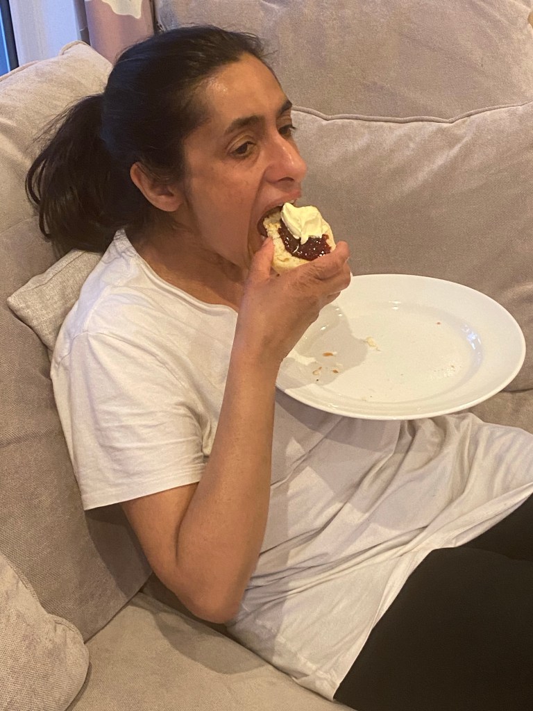 Scone, toasted, then jam, topped with local Cornish Clotted Cream…who could resist…